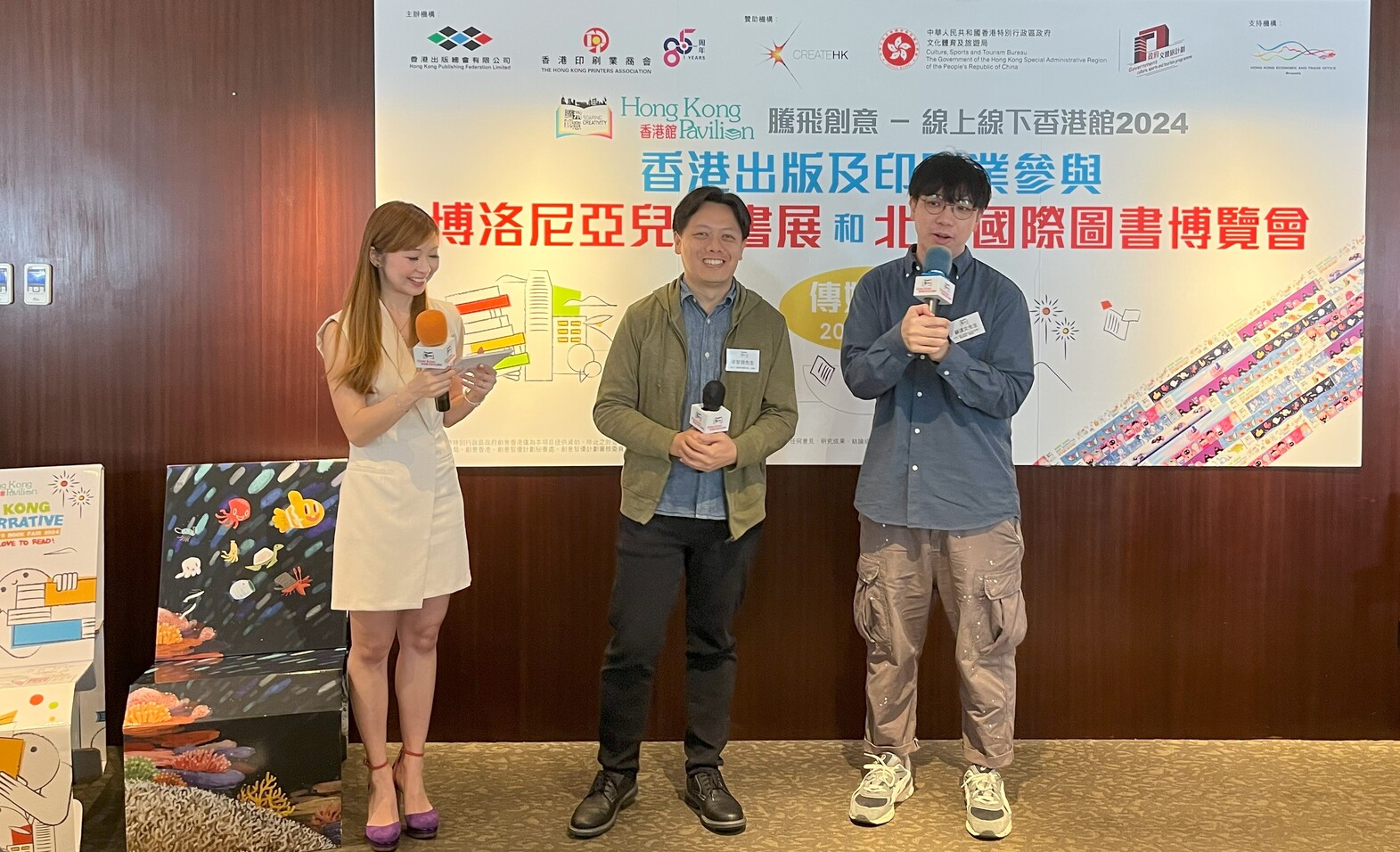 此外,其中五位將在2024博洛尼亞兒童書展「香港館」擔任文化活動的講者,包括鴻興印刷集團 商業總監 任加信先生、香港教育大學 文學及文化學系 一級講師 蔡逸寧博士、「出版3.0—香港智能電子書庫」執行主席(常務) 黃燕如博士、2024「博洛尼亞拉加茲獎—新視野獎」得獎者 蘇頌文先生(Pen So),以及2024 「國際無字書大賽」香港唯一入圍者姜智傑先生,亦親臨今日的傳媒午宴,介紹他們將在「香港館」舉行的文化活動。其中蔡博士表示:「十分期待能夠與不同文化背景的海外業界進行交流。」